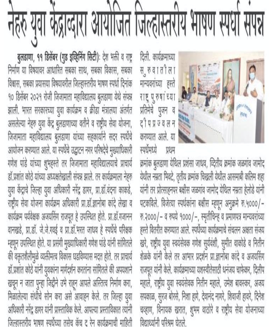 Organized One Day District Level Oratorical Competition, Date- 10Dec. 2021